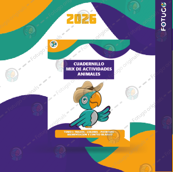 Actividad en formato pdf - Cuadernillo mix de actividades de animales. Trabaja: trazos, colores, patrones y segmentación y conteo silábico asociado a animales. Consta de 28 páginas incluyendo la portada.